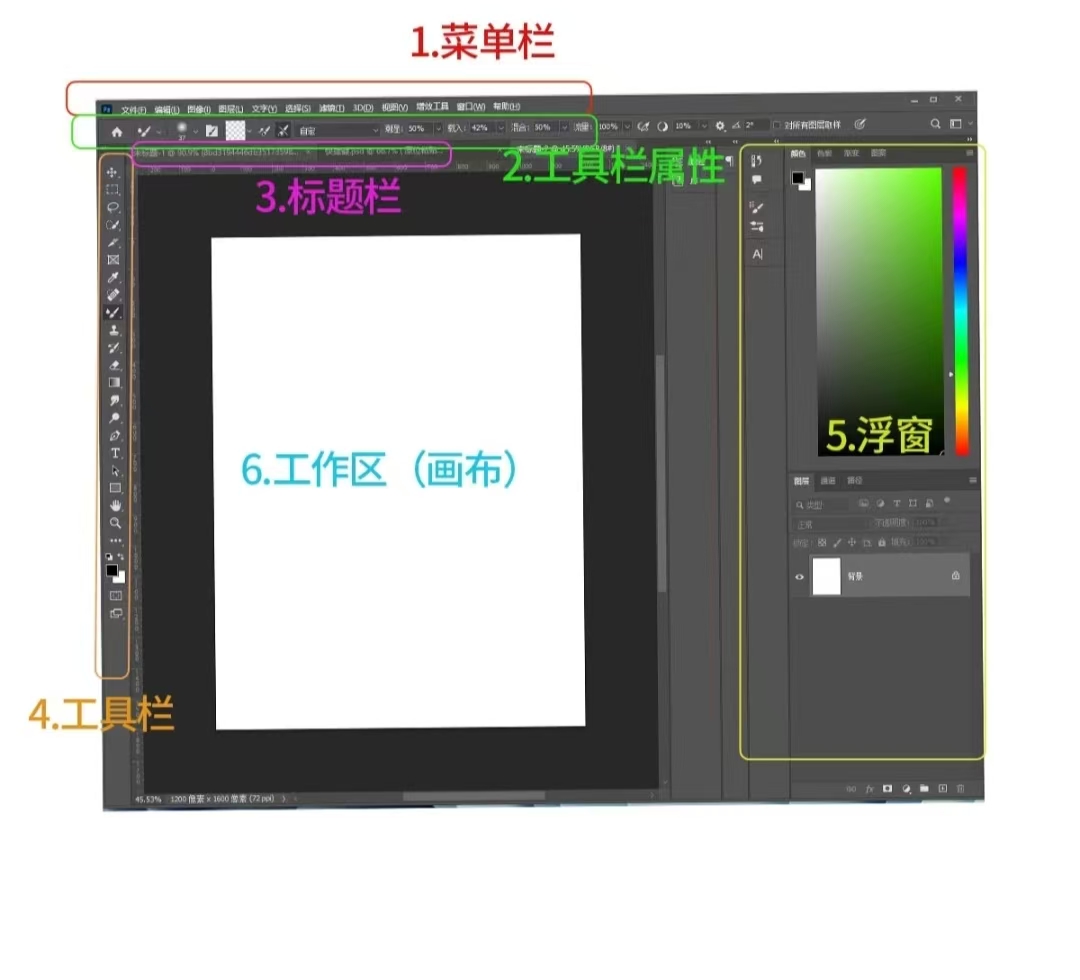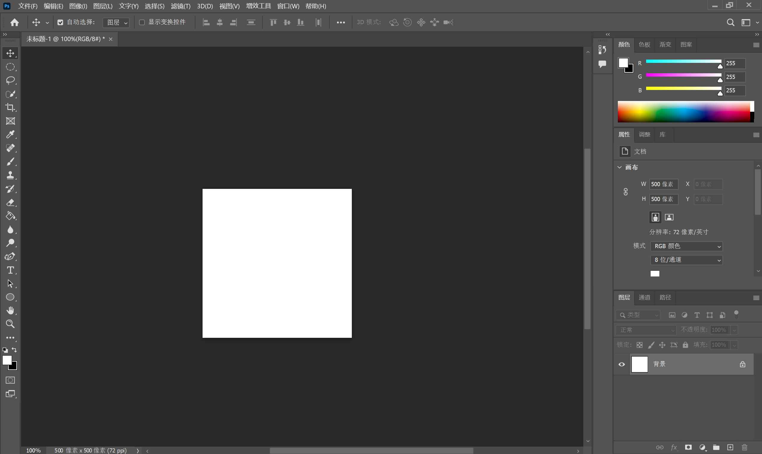 创建好的初始界面(tips:创建好之后如果还想更改画布大小:右上角“图像”->“画布大小”)