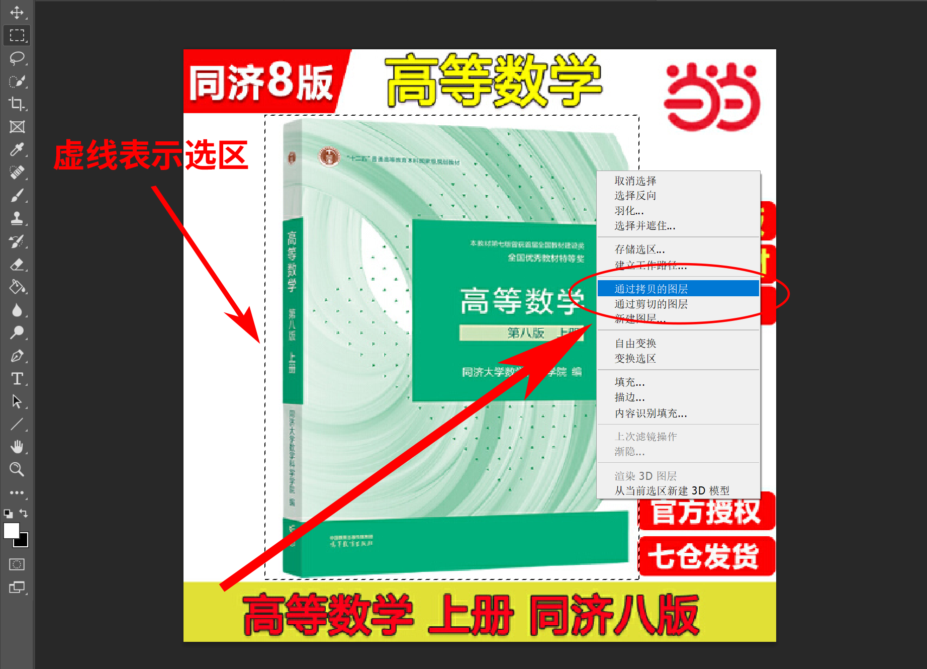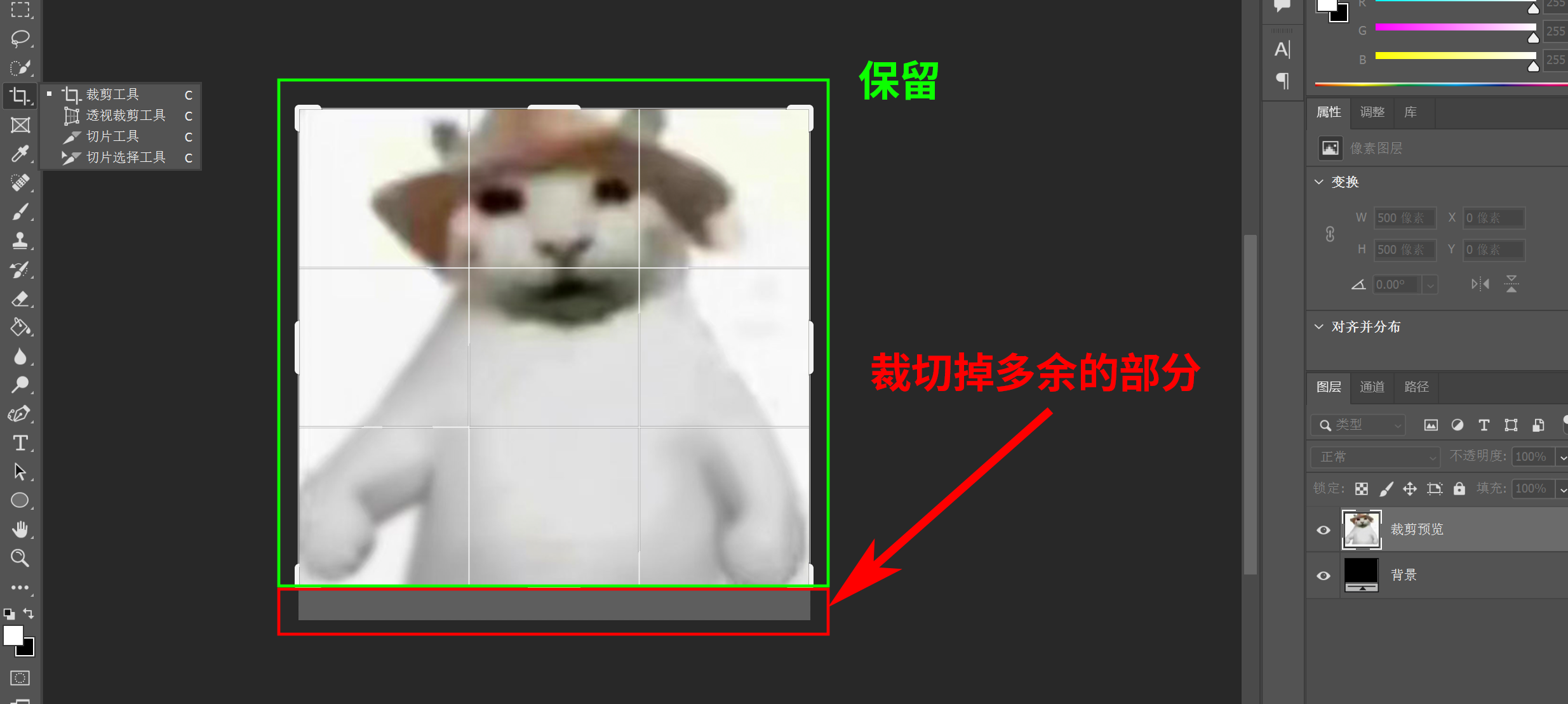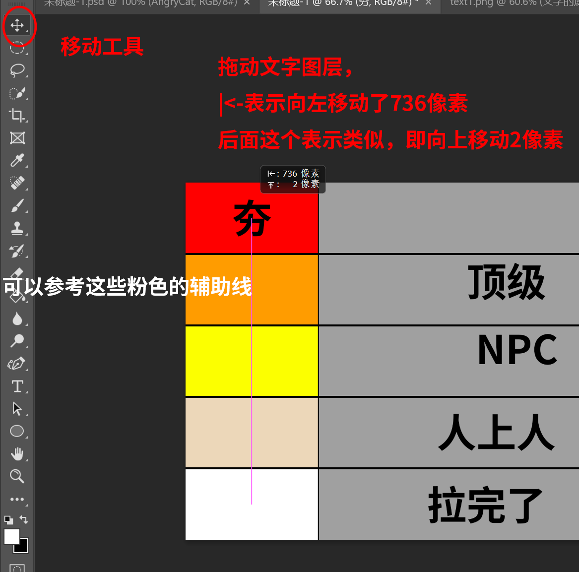 (如果出现青色的参考线,点击上方“视图”->“参考线”->“清除参考线”,即可清除)